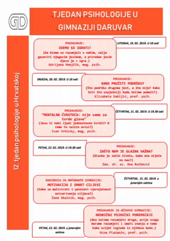 VRIJEME I MJESTO: ČETVRTAK, 21. 02. 2019. u 12.25, Gimnazija Daruvar, Gundulićeva 14