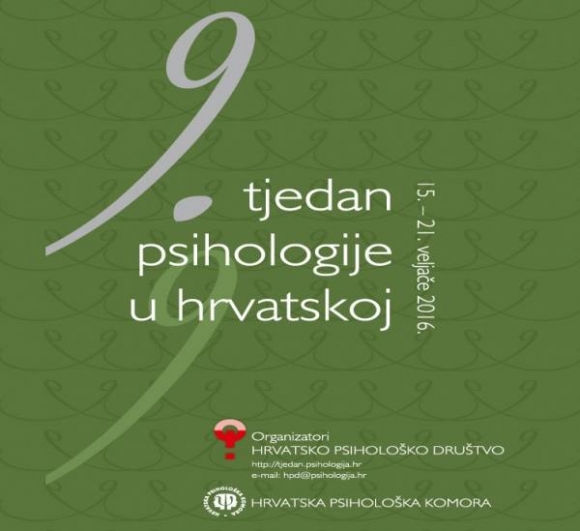 Obaviješavamo zainteresirane da će u okviru Tjedna psihologije 17.veljače,2016., s početkom u 14:00 sati u prostorijama Županijskog državnog odvjetništva u Zagrebu, Savska 41/4, pročelnica Sekcije za forenzičnu psihologiju Hrvatskog psihološkog društva, dr.sc. Jadranka Zorić i dopročelnik Sekcije za forenzičnu psihologiju doc.dr.sc. Dražen Kovačević održati slijedeća predavanja: