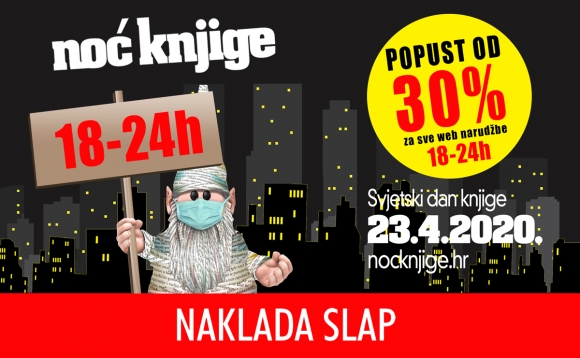 U Noći knjige, u četvrtak 23. travnja 2020. između 18 i 24 sata, privatnom kupnjom putem webshopa ostvarite popust od 30% na sva izdanja Naklade Slap, uz besplatnu poštarinu.