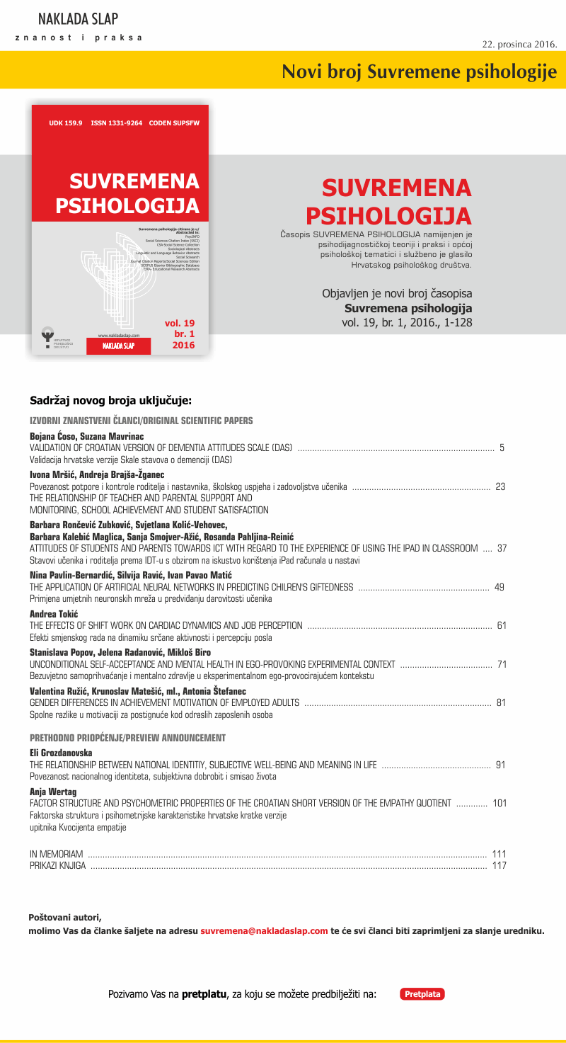Suvremena psihologija - novi broj svim članicama i članovima HPD-a Petak, 23 Prosinac 2016 19:25 Ispis E-mail Pročitano2655 puta Objavljeno u Vijesti Vaša ocjena 1 2 3 4 5 (2 glasova) Više iz ove kategorije: « Efpa news magazine - prosinac 2016 Efpa news magazine - prosinac 2016» natrag na vrh ▲