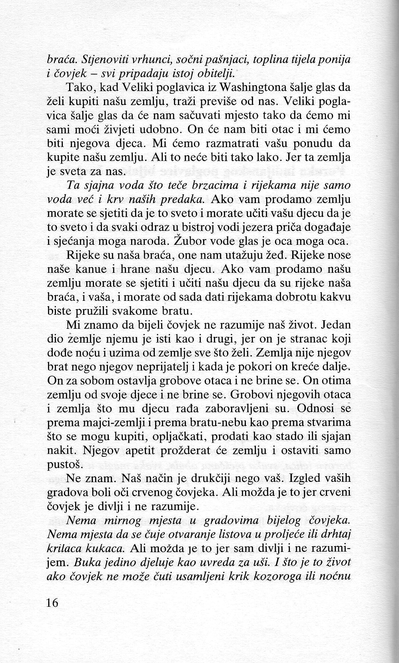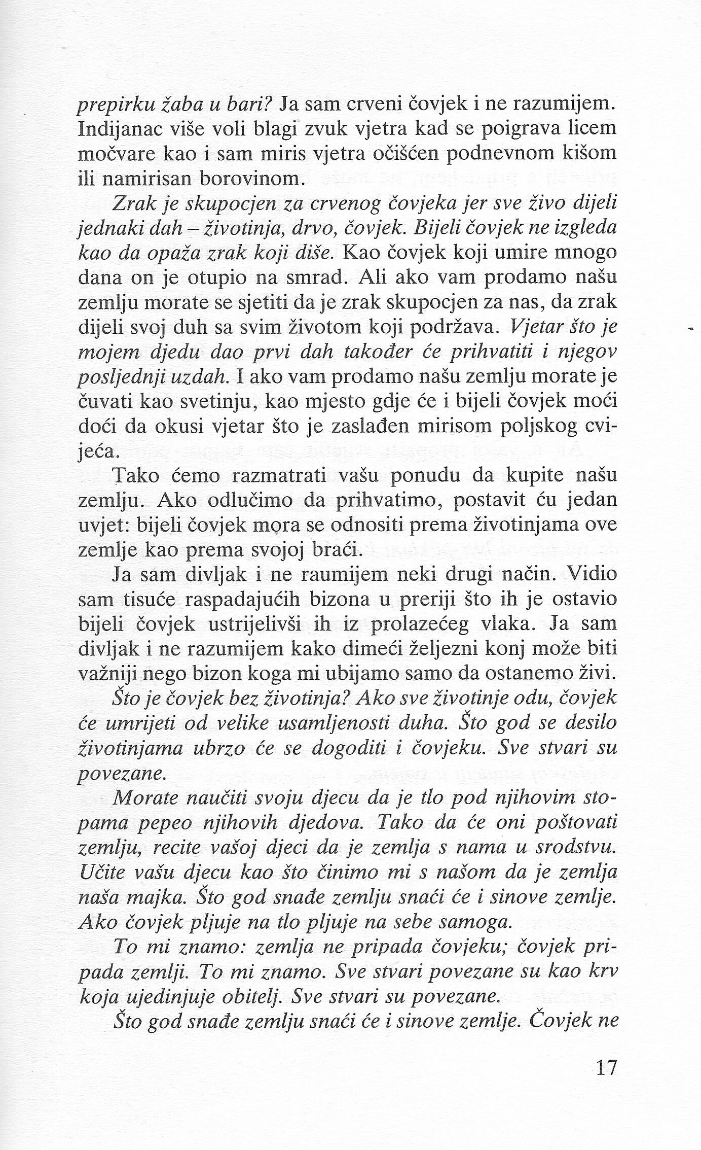 U privitku donosimo preslike pisma poglavice Seattle-a kroz 4 dijela, Preporučujemo, pročitajte ih i razmislite, je li vrijeme da se kao psiholozi više angažiramo na području ekologije: